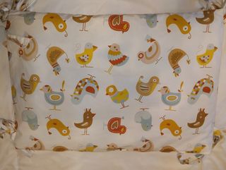 Conjunto ropa de cuna para bebé de la marca Pirulos. Perfecto estado. Incluye: - Juego de sabanas (sábana bajera, encimera y funda de almohada). - protectores laterales. - chichonera acolchada con cojín y nórdico a juego para cuna estándar 2 cojines decorativos. - 2 arrullos. Todo en tonos lilas y blancos con estampados infantiles. En muy buen estado casi sin uso.