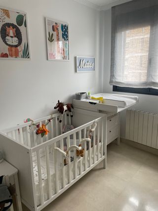 Cuna de Ikea en perfecto estado,solo en el cajón un par de desperfectos que apenas se aprecian (adjunto fotos),incluyo colchón en perfectísimo estado ya que ha tenido poco uso y siempre con su funda. Se encuentra desmontada pero se puede ver sin ningún compromiso.