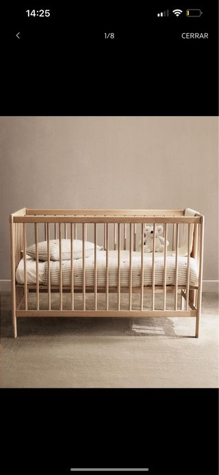 Cuna clásica de madera de haya de Zara Home. Actualmente en tienda por 199€ Sólo cuna---150€ Colchón de Zara home nuevo 69,99---30€ Relleno nórdico Zara home nuevo con su bolsa--- 15€ 2 juegos de funda nordica+1 sábana bajera+cojín a juego con relleno Zara home --- 25€ TODO 200€