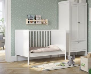 Cuna IKEA blanca con muchas cosas