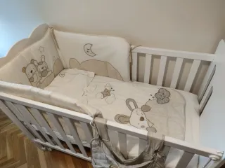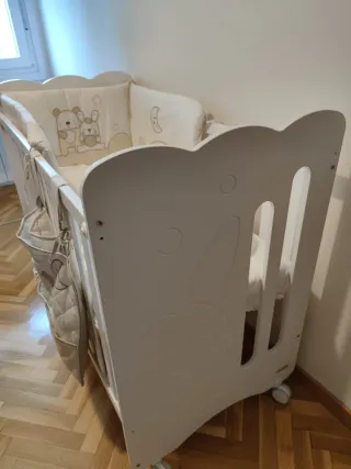 Cuna completa en buen estado, lista para usar. - Incluye: Colchon, protector, juego de sábanas, nórdico de plumas, funda nordica. Si se quiere envio se puede hablar