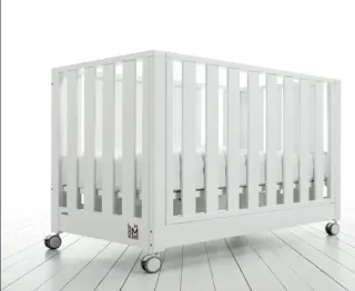 Cuna de madera blanca con ruedas
