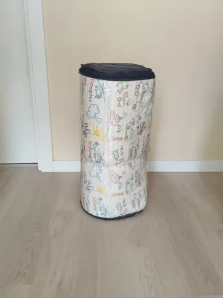 Colchón de espuma enrollable para cuna de viaje. Su diseño permite guardarlo y transportarlo fácilmente. - Tejido con estampado de vehículos infantiles. - Acolchado para mayor comodidad. Prácticamente sin usar, la funda del colchón es desmontable con cremallera y lavable. La. funda del colchón también está un poco acolchada para. mayor comodidad