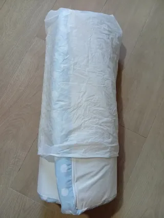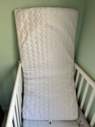 Tiene un par de usos como mucho en dos vacaciones. Colchón blanco para cuna de viaje de 120x60. Es acolchado y cómodo. Precio en web 39,9€ en amazon. - Tejido exterior acolchado transpirable. - Antiácaros, antiasfixia. - Funda extraible y lavable.