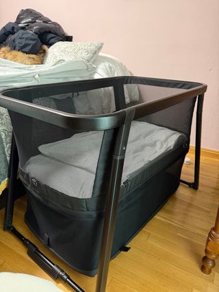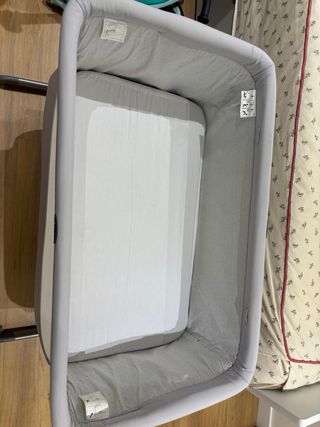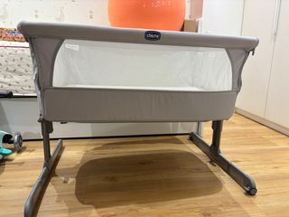 Cuna de colecho Chicco Next2Me en color gris. Permite tener al bebé cerca durante la noche. Usada solo unos meses Muy bien cuidada 6 niveles de altura Pies plegables - Diseño moderno y funcional. - Laterales de malla transpirable. - Base acolchada para mayor comodidad. Incluye todos los accesorios. Colchón, bolsa de viaje, funda de edredon, sábana colchón.