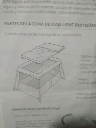Cuna de viaje ligera y práctica, ideal para transportar y usar en cualquier lugar. Incluye su propio colchón y maleta para guardarla. - Colchón incluido. - Funda de transporte. - Bisagra. - Protección de patas. Marca BABYBJORN PRECIO EN TIENDA 252 €