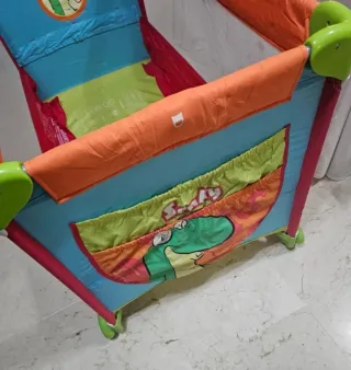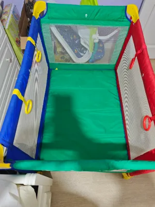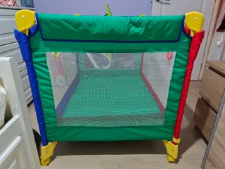 Parque cuna de viaje de marca Asalvo, en varios colores. Incluye funda para su transporte y posibilidad de colchón si lo necesitas. - Diseño plegable. - Colores del Parchís. - Ruedas con freno. - Fácil de limpiar. Incluye la funda con asas para facilitar su transporte y la base acolchada en 2 colores, con sus velcros en perfecto estado, para que no se deslice y que el niño esté más cómodo al dormir o jugar. - Puede usarse como zona segura de juegos o para el descanso. -Las redes laterales se encuentran sin desperfectos. -- Tela con pequeños desgastes/agujeros en los "clicks" del cierre (ver últimas fotos) #parquecuna #cunadeviaje