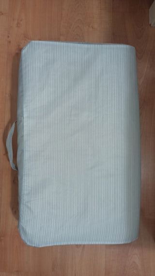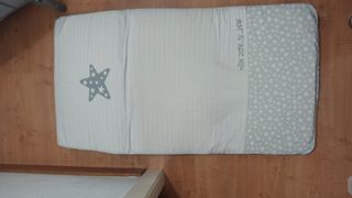 Colchón diseñado para las cunas de viaje, es práctico y confortable y está fabricado con materiales de gran calidad. Cuenta con un tejido superior de algodón suave y un tejido para la parte inferior de malla 3D que mejora la transpiración. Es fácil de limpiar gracias a su funda que se quita con una simple cremallera. Medidas abierto: 60 x 6 x 120 Medidas cerrado: 60 x 28 x 28 - No se ha usado por tamaño de cuna diferente. - Precio original: 39€ - Venta solo en persona.