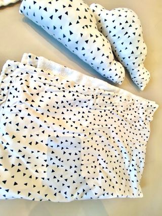 Cuna nido de colecho con accesorios y dos fundas intercambiables. Vendo cuna colecho evolutiva y multifuncional con un relleno de nido y dos fundas: una blanca con ojitos cerrados y otra de triangulitos negros que combina con un poncho toalla y cojines nube. Hecha de algodón orgánico, es ligera y fácil de transportar, ideal para tener al bebé cerca en cualquier parte de la casa o de viaje. El nido incluye un colchón de espuma firme y un rulo protector, perfecto para crear un espacio cómodo para el bebé. Además, puede usarse como cojín de lactancia, reductor de cuna o incluso como zona de descanso portátil.
