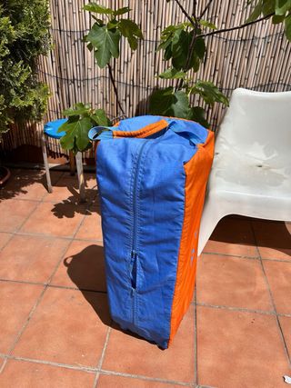 Cuna de viaje de la marca Jane. Funda de transporte con asas. Es de doble altura para cuando son más bebés. Usada en muy pocas ocasiones en segunda residencia.