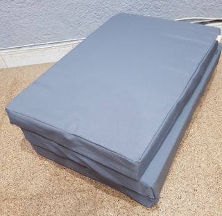 Colchoneta acolchada para cuna de viaje. - Color gris oscuro. - Diseño con dos secciones. - Funda de tela. #ColchonetaCuna #ColchonCunaViaje #CunaViaje #ColchonBebe #AccesoriosBebe #Bebe #Puericultura #ArticulosBebe #Crianza #SegundaMano #BuenEstado