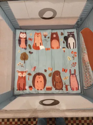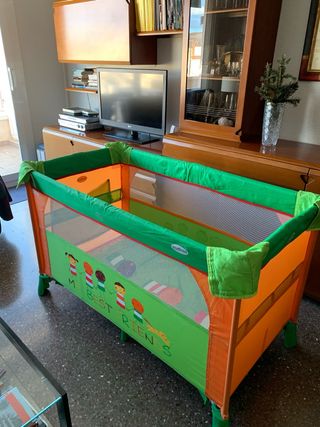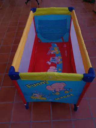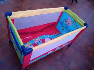 Cuna de viaje en buen estado. Nos la regalaron y como nos juntamos con dos la hemos usado más como parque infantil que lo ha disfrutado mucho. Lo hemos cuidado, está en buen estado. Lo entregamos doblada con su funda. La abertura que yiene les gusta mucho y las ruedas van genial para moverla