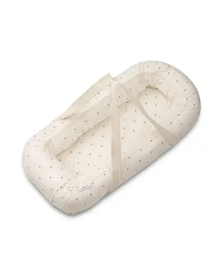 Nido de colecho de la marca Liewood modelo GRO. Un único día de uso. Ajustable a la necesidad y tamaño de tu bebé. De algodón orgánico, tiene una funda extraíble con un estampado de puntos y asas prácticas que facilitan su transporte. El material suave ofrece un lugar de descanso seguro y cómodo para tu bebé, y la funda se puede lavar fácilmente para mayor higiene. Perfecto tanto para el hogar como para viajar. Nos costó 130€, lo vendemos por 90€.