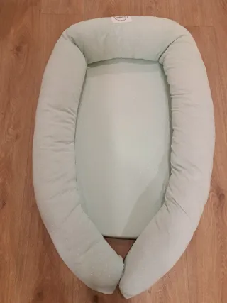Nido para bebé de la marca Inglesina, modelo Welcome Pod. Ayuda al bebé a relajarse y dormir más fácilmente porque lo envuelve en un espacio acogedor que lo hace sentir protegido. También es muy útil cuando el bebé se está iniciando en el tummy time y para utilizarlo de cuna improvisada de viaje ya que con la funda se transporta muy fácil y no ocupa mucho. Se adapta al crecimiento gracias a la abertura en la parte inferior y al cilindro anatómico regulable anticólicos. Está muy cuidado puesto que solo lo hemos utilizado para unas cuantas siestas y siempre con funda o muselina. Nuevo nos costó 139€.