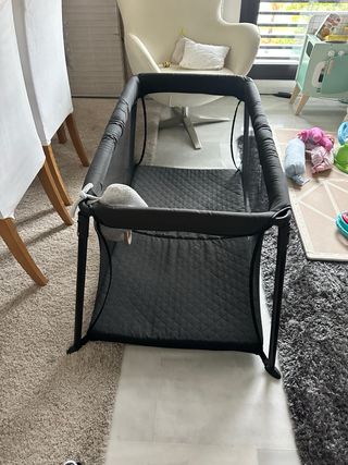 Parque cuna o cuna de viaje con muy poco uso, tiene dos alturas para poner al bebé y se pliega fácilmente. Incluye colchón, funda de transporte original y mosquitera. Esta como nuevo