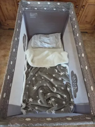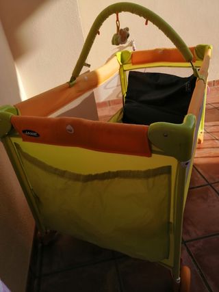 Vendo cuna de viaje en perfecto estado de conservación y mantenimiento. Utilizada en muy pocas ocasiones. La vendo porque el niño ya ha crecido lo suficiente y necesita una cama. Lleva funda para viaje y sistema para dos alturas.