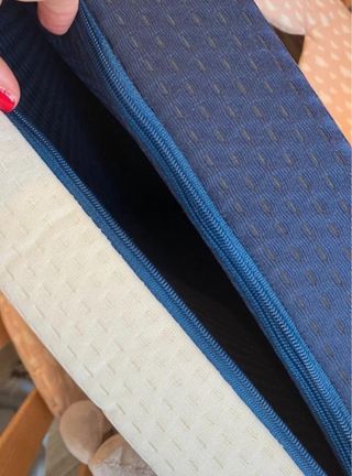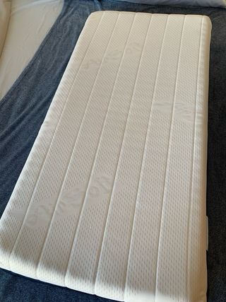 Colchón de cuna de 60x120 cm. Se pliega por la mitad, viene en su funda transparente. La funda se puede quitar y lavar (la cremallera está con un clip, venía así de origen).Medidas plegado 14 cm de grosor (7cm abierto), 60 cm de ancho y 120 cm de largo. En perfecto estado, casi sin uso. Comprado en Amazon por 59.99 euros.