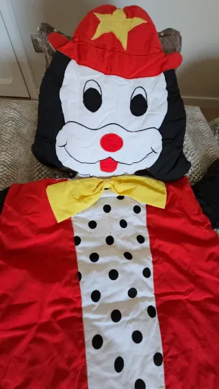 Saco de dormir infantil con un divertido diseño de perrito. Incluye una funda de almohada de 68 cm x 48 cm. Medidas del interior del saco: 130 cm de largo x 60 cm de ancho. Lleva cremallera en un lado. Es ideal para viajar y para siestas. - Diseño de lunares blancos y negros. - Detalles en rojo y amarillo. - Sólo tiene una mancha trasparente en un lateral ( foto).