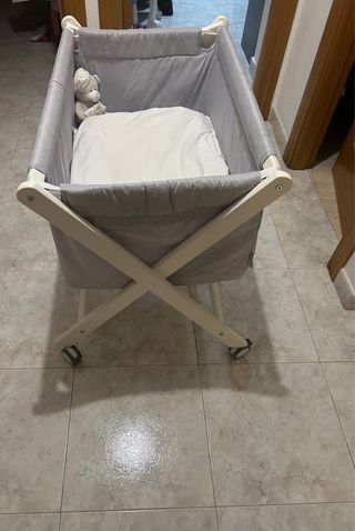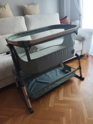Cuna colecho de la marca Jane, modelo Baby Side. Su diseño permite colocarla junto a la cama para mayor comodidad. en excelente estado, usada solo 3 meses. Muy cuidada, sin manchas ni desgastes. Incluye: • sábanas bajeras • Funda protectora de colchón • Colchón La cuna es regulable en altura, se puede usar como colecho o cuna independiente y es muy fácil de mover gracias a sus ruedas bloqueables. Dispongo también de un colchón viscoelástico adicional (80×50 cm, altura 12 cm, transpirable, antiácaros, antihongos y antibacterias). Si te interesa el colchón viscoelástico son 20€ adicionales.