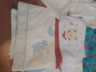 Lote de 1 juego de sábanas de invierno de mini cuna de franela, 1 juego de sábanas de mini cuna de coralina, 2 edredones + 1 funda de mini cuna, 3 protectores de colchón de mini cuna y 2 de cuna. Todo en perfecto estado.