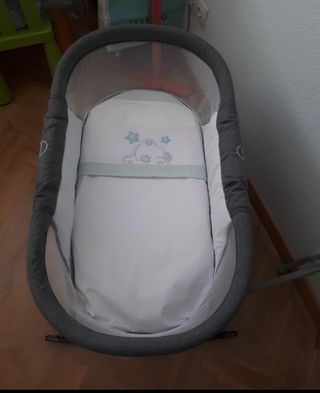 Vendo mini cuna que vale tambien para viaje porque pliega y va con su funda en perfecto estado. Es gris y tiene un diseño elegante y sencillo. - Plegable y fácil de transportar. - Incluye colchón. - Ideal para recién nacidos. - Incluye mosquitera y bolsa para transportarla