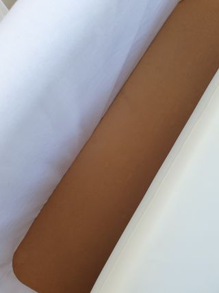 Algunas marcas en la madera, funda de algodón blanca y azul muy claro