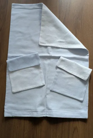 En muy buen estado, se cierra con velcro para poder sacar el relleno y poder lavarlo. Hechos por encargo. Yo lo he usado en el capazo pero también se puede usar en cuna. - 77x55cm aprox - Diseño en color azul REVERSIBLE. - Incluye funda de edredón, relleno y 2 protectores de cabeza (muy útil para cuando regurgita) REGALO otro juego de funda, relleno y 2 protectores. Azul grisáceo y puntos (segunda foto)