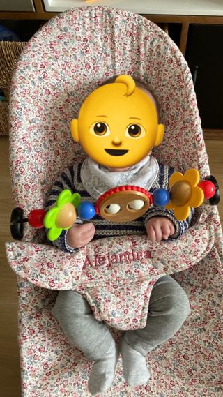 Funda de repuesto para hamaca Babybjorn con un bonito estampado floral, y nonbre bordado Alejandra - Diseño floral. - Tejido suave y cómodo. - Uno de los elásticos que engancha a la hamaca se ha descosido, pero está bien.