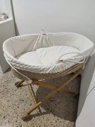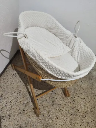 Moisés de mimbre con soporte de madera + fundas