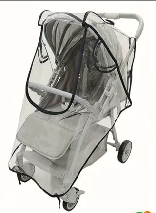 Protector de plástico transparente para cochecito de bebé, ideal para proteger contra la lluvia y el viento. - Material: Plástico transparente. - Cierre: Cremallera.