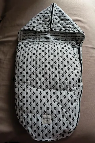 Funda para coche/capazo de bebé de la marca Walking Mum, sin usar, totalmente nueva. Guardo el tiquet, comprado en el corte inglés. - Diseño con estampado de rombos en blanco y negro. - Cierre de cremallera. - Se adapta a muchos modelos de carro gracias a sus aberturas. - Etiqueta de la marca visible.