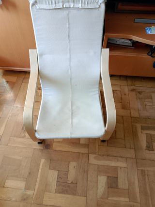 Se venden dos sillas Poäng infantiles de IKEA. Son cómodas y perfectas para los más pequeños. - Estructura de madera curvada. - Fundas de tela acolchada en color blanco. 20 euros casa silla
