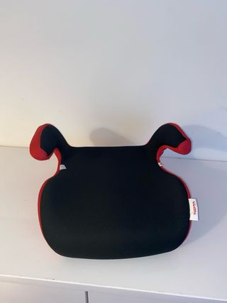 Silla elevador para coche, ideal para niños. Diseño en color negro con detalles en rojo. - Acolchado para mayor comodidad. - Funda extraíble y lavable. Obligatorio hasta que el niño alcanza 135 cm de altura, siendo recomendable hasta los 150 cm.