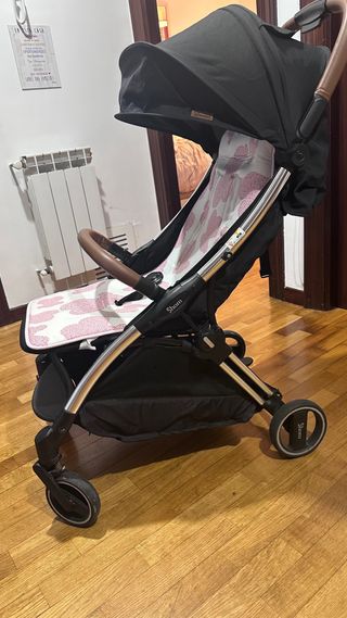 Silla de paseo Maclaren Quest en color negro con champán (beige). Ideal para paseos, viajes, playa, etc. Regalo funda deñluvia de la Maclaren. La funda tiene una esquina pegada pero funciona igual de bien. Como se ve en las fotos, tiene algunas manchas en su funda, sobre todo en la zona del asiento y las gomas en los manillares están algo gastadas - ninguno interfiere en du funcionamiento. Sillita de paseo.
