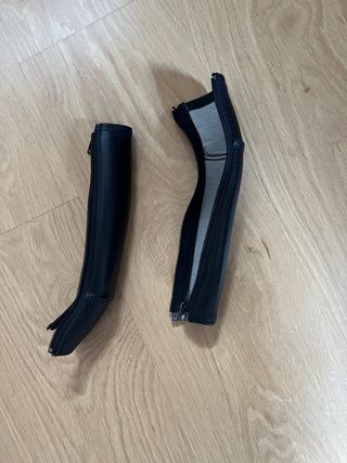 Fundas negras para las manillas de un cochecito. - Material: polipiel. - Cierre con cremallera.