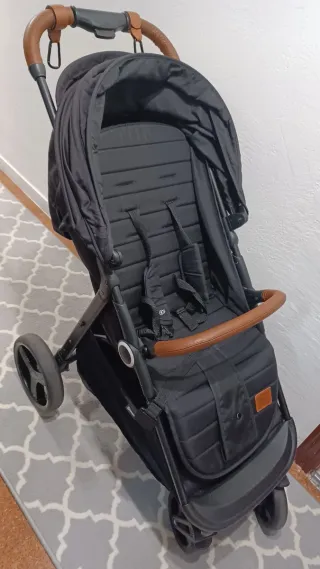 Silla de paseo Kinderkraft GRANDE PLUS en color negro, con detalles en marrón. Es hasta 22 kgs. Tiene ruedas grandes atrás,tiene cinturones de seguridad y respaldo reclinable. La capota tiene una ventanita y atrás tiene un bolsillo con cremallera. Plegado con una sola mano, Posición tumbada. Tiene algunos rayones pero está en perfecto estado y todo limpio.Lo que NO funciona es el freno , está roto. Se incluye los ganchos del manillar , trae cubrepies y una funda con cremallera y forro por dentro para invierno. Entrega en mano en Gijón , Asturias.