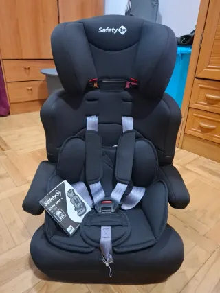 Silla de coche Safety 1st en color negro, apta para los grupos 1, 2 y 3. Es un asiento desmontable. - Diseño ergonómico. - Arnés de seguridad de 5 puntos. - Reposacabezas ajustable. - Funda extraíble y lavable.