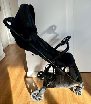 Silla de paseo ligera y compacta, ideal para viajes. Apta cabina de avión - Color negro. - Capota. - Arnés de seguridad. - Opción de colocar accesorio barra seguridad -Fundas extraibles para lavar - Reclinable hasta posición tumbada - Usada, de ahí el precio, pero funciona perfectamente
