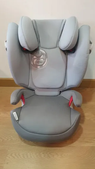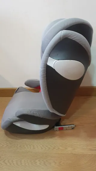 Silla de coche Cybex para niños de 15 a 36 kg. Diseñada para ofrecer seguridad y comodidad. - Tapicería gris y negra, fundas lavables. - Reposacabezas ajustable. - Usada pero nunca tuvo ningún accidente ni problema No envío, pero voy a menudo por Galicia y podría llevarla.