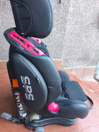 Silla de coche para bebé en perfecto estado, prácticamente sin uso. Ideal para garantizar la seguridad y comodidad de los más pequeños en cada viaje. - Diseño en color negro con detalles en rosa. - Sistema de protección lateral (SPS). - Funda extraíble y lavable.