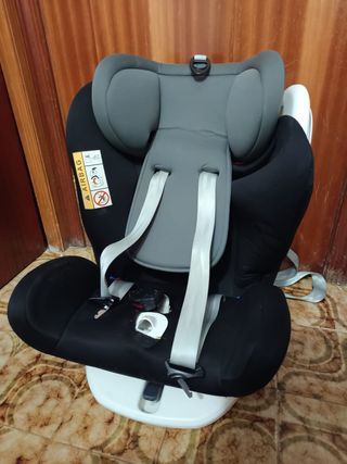 Silla marca Romer duo, de primer nivel, super buena, con Isofix. No te voy a mentir: está muy usada. Pero eso no significa q este mal. Es una roca. Seguridad máxima. Cinturones super seguros y cómodos. Y una vez anclada al coche con el Isofix y el añadido de seguro de cinturon, no se mueve . Parece el asiento de un avión de combate. Podría dar vueltas y el niño ni se movería. No lo dudes, es una auténtica ganga. Además, las fundas son lavables, se puede quedar como nueva. Jamas ha tenido golpes.