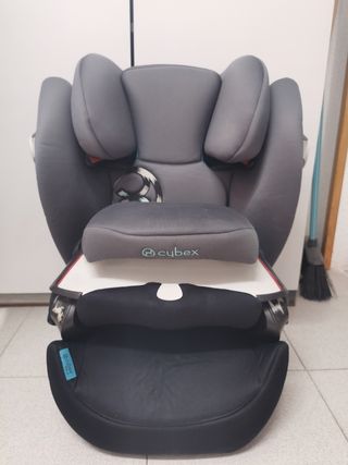 Vendo silla de coche para niño (grupo 2 y 3, de 15 a 36kgs, aprox de 3 a 6 años). Fundas desmontables y lavables, cabecero regulable en inclinación (5 puntos) para que no se le caiga la cabeza al niño al quedarse dormido y respaldo regulable en altura. También se desmonta el respaldo para dejarlo solo como elevador. Es el modelo Cybex Solution X, sin isofix (apto para cualquier coche). Ideal para segundo coche; yo la he tenido montada en el coche de los abuelos, con poco uso.