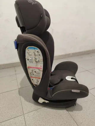 Silla de coche versátil para diferentes grupos de edad. - Diseñada para los grupos 0, 1, 2 y 3. - Incluye sistema de protección lateral. - Funda extraíble para lavado. - Base giratoria. - Fijación Isofix. - Reclinable. - Reposacabezas y arnés regulable.