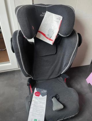 Silla de coche Britax Römer con sistema Isofix. De las mejores del mercado. - Color gris con protección lateral ajustable. - Reposacabezas ajustable. - Arnés de seguridad de 5 puntos. - Funda extraíble y lavable, recién lavada, no le dio tiempo a secarse entera 😅. - Regalo segunda silla para ya muy usada pero que vale perfectamente y que usaba en el coche de mis suegros. NO hago envíos ni cambios, está impecable y regalo otra. El que busca esta silla ya sabe lo que hay.