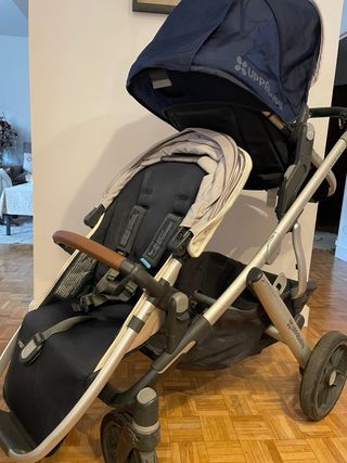 Cochecito UPPAbaby Vista, ideal para gemelos o hermanos con poca diferencia de edad. Su diseño permite múltiples configuraciones. La silla grande está más usada. La segunda silla nueva apenas usada y el capazo muy bien. Tengo caja y funda. - Anclajes para segunda silla. - Capazo y silla incluidos. - Capota extensible con protección solar. - Manillar ajustable en altura. - Cesta de almacenamiento amplia.