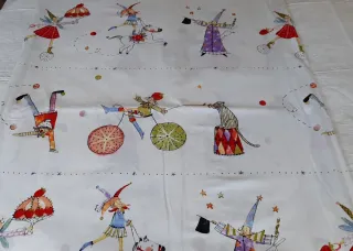 Funda nórdica con un divertido estampado de circo, ideal para camas de 90cm. - Diseño con personajes circenses y estrellas. - Estampado a todo color sobre fondo blanco.
