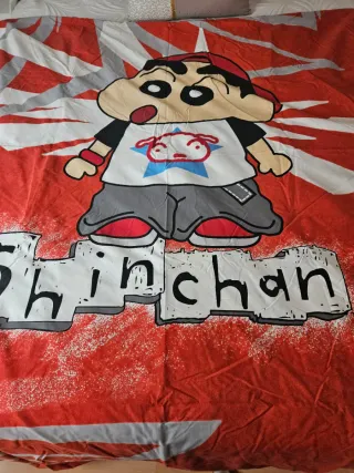 Funda nórdica reversible con el personaje de Shin Chan. Ideal para cama individual. - Diseño reversible. - Estampado de Shin Chan.