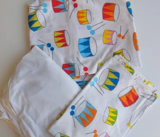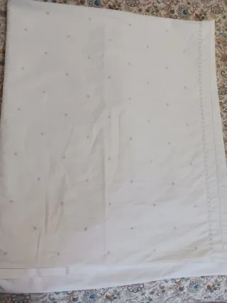 Conjunto de sabana y dos fundas de almohada, una de ellas no es del conjunto, pero pega perfectamente. Textura muy suave y agradable. Están como nuevas, pero tiene una pequeña mancha (pongo foto) que seguro que se quita con un lavado