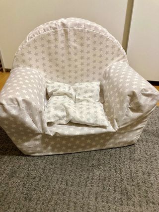 Sillón de espuma para niños con un divertido estampado de estrellas. La funda es lavable para facilitar su limpieza.