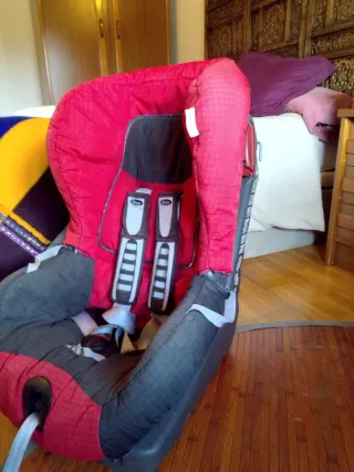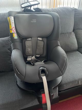 Silla de coche Britax Römer en color negro, apta para los grupos 0 y 1. - Diseño moderno y seguro. - Acolchado para mayor comodidad. - Sistema de arnés de 5 puntos. - Valida hasta 105cm Tiene desgastado el cordón de ajustar los arneses como se muestra en la foto pero funciona sin problema. Tengo también el espejo para ver al bebe por el retrovisor a contramarcha y una funda lavable para proteger la tapicería.